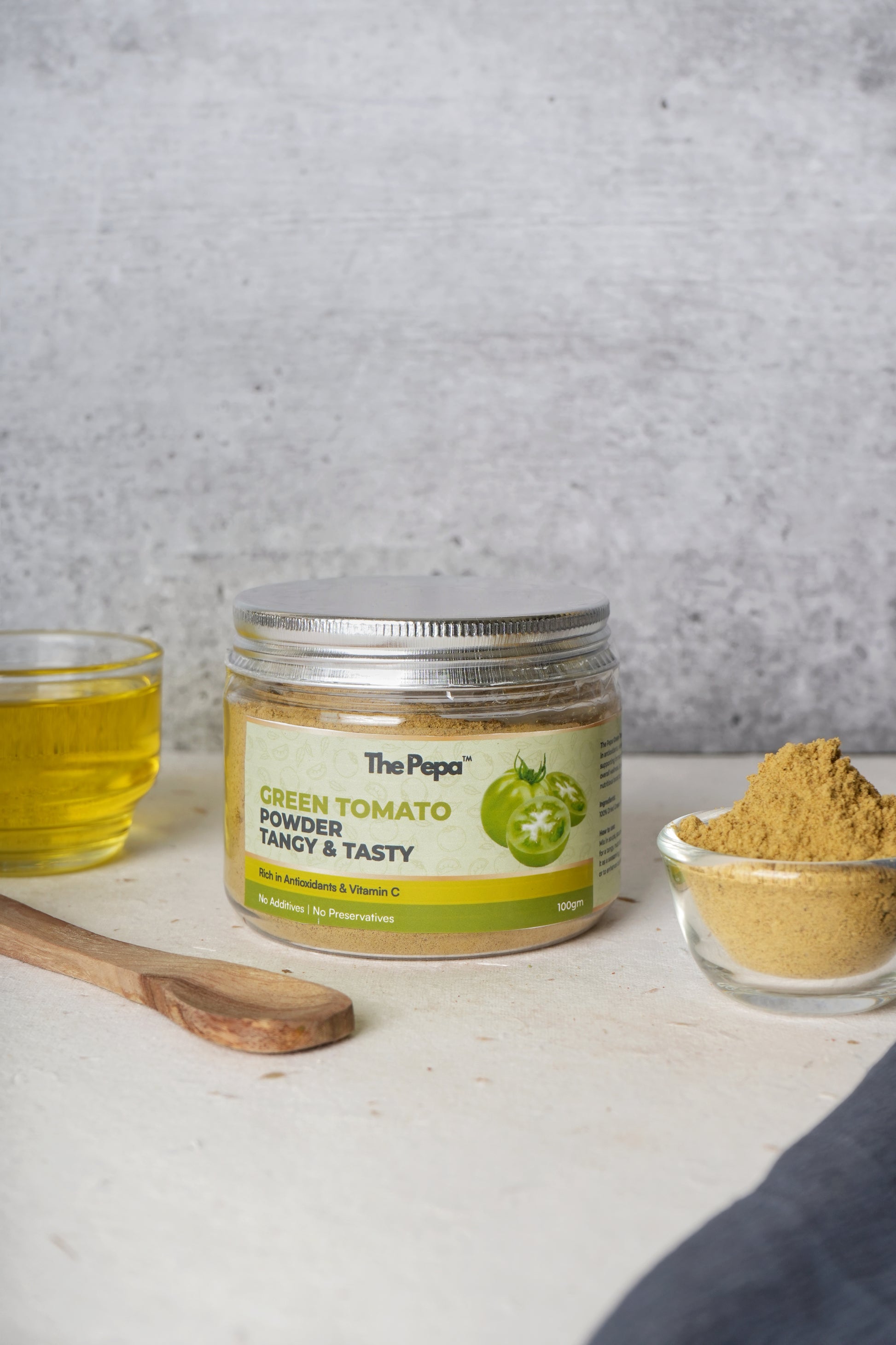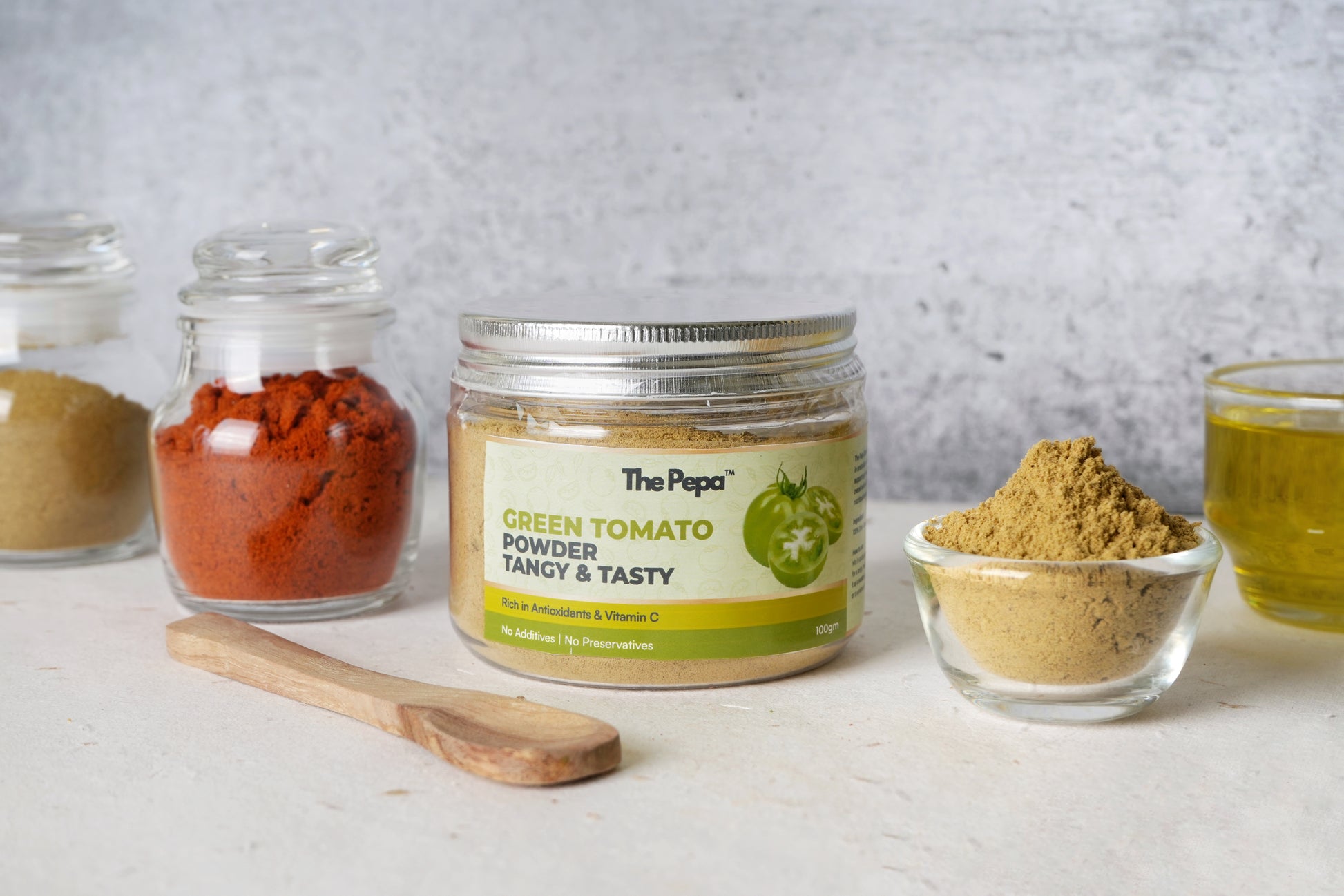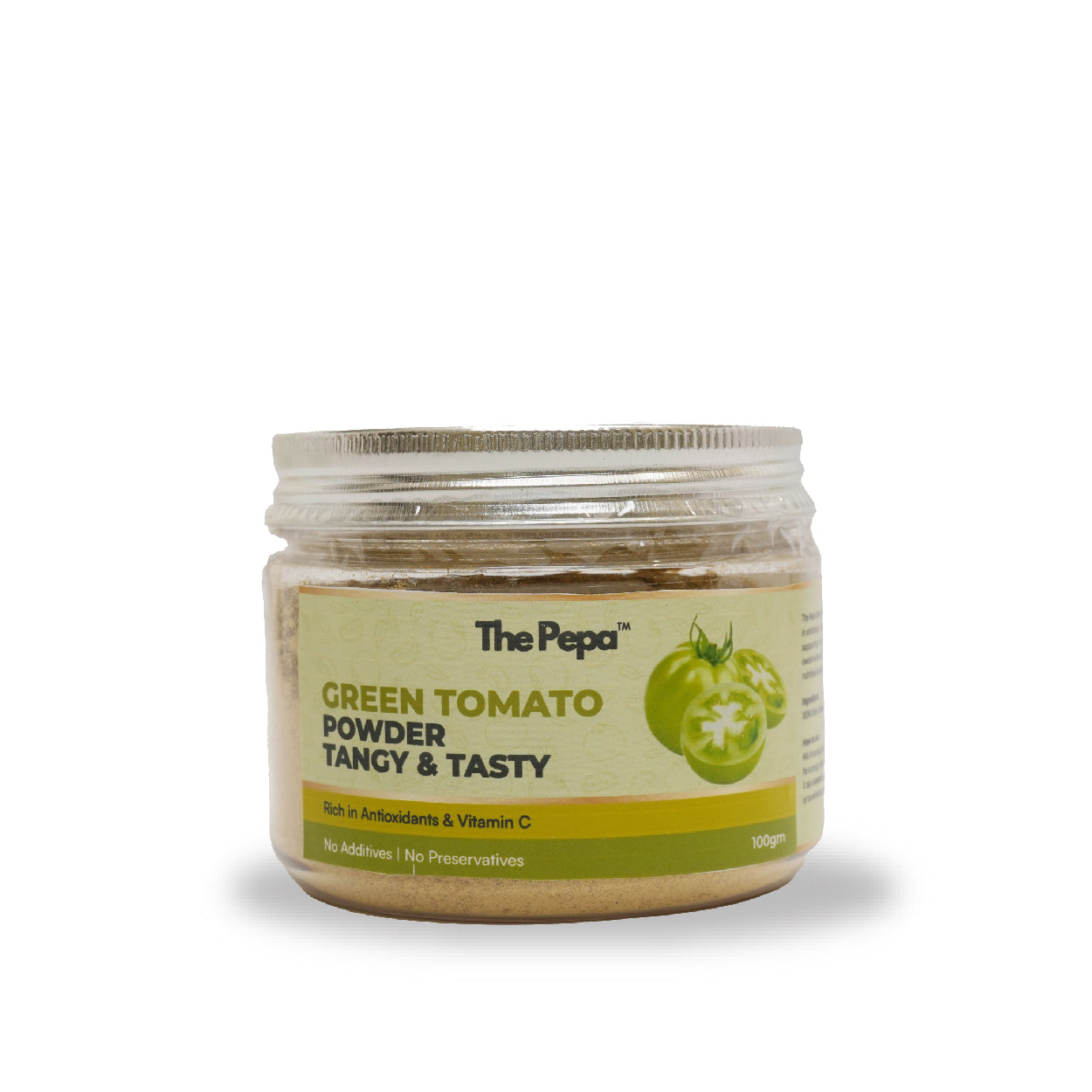Our Green Tomato Powder, tangy and nutrient-rich. Great for soups, sauces, and seasoning. No additives, just real tomato goodness!